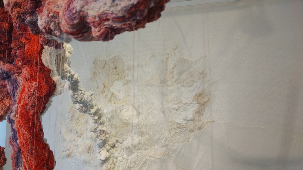 Installation made of hand-stitched and hand – dyed lace